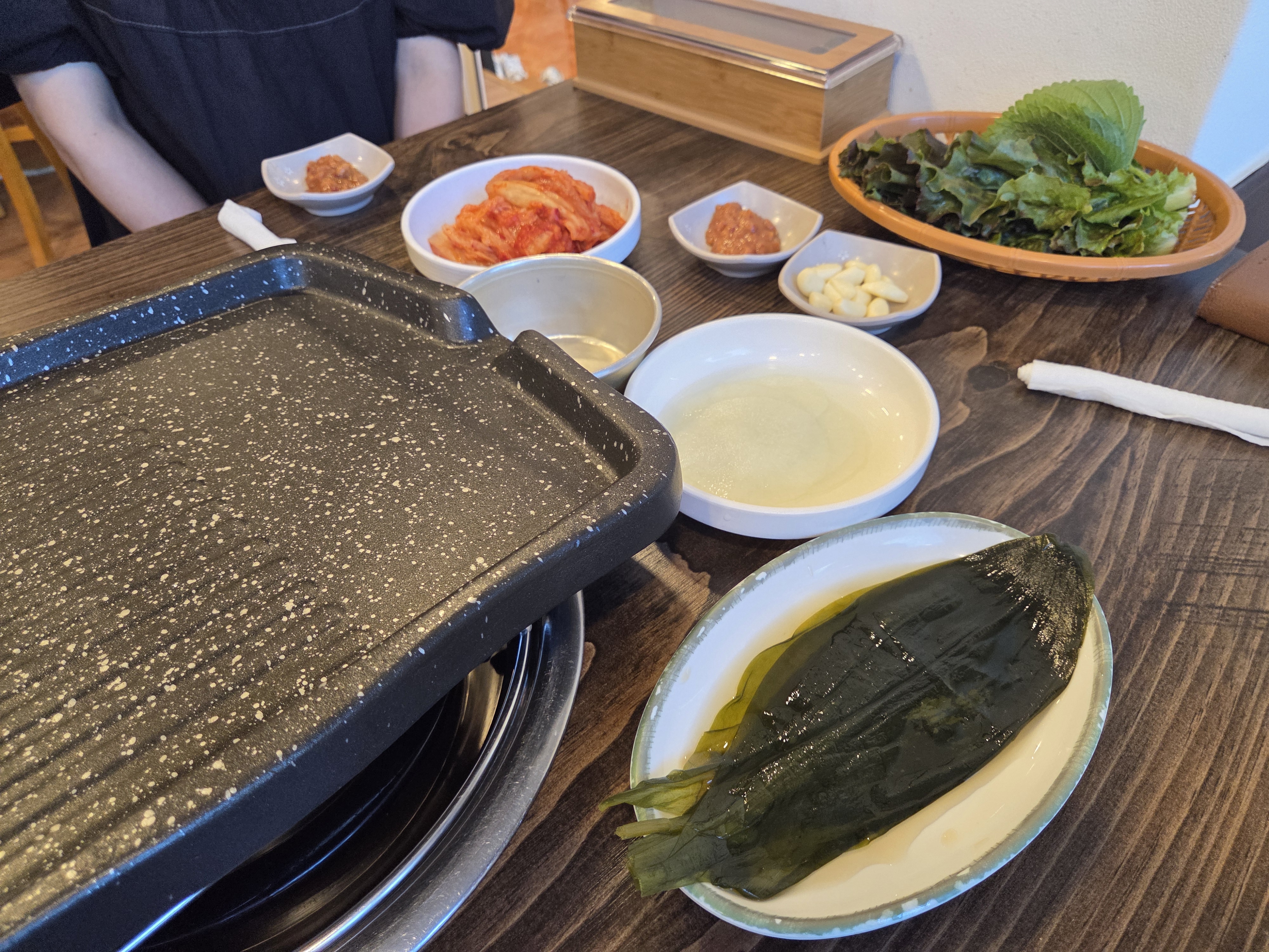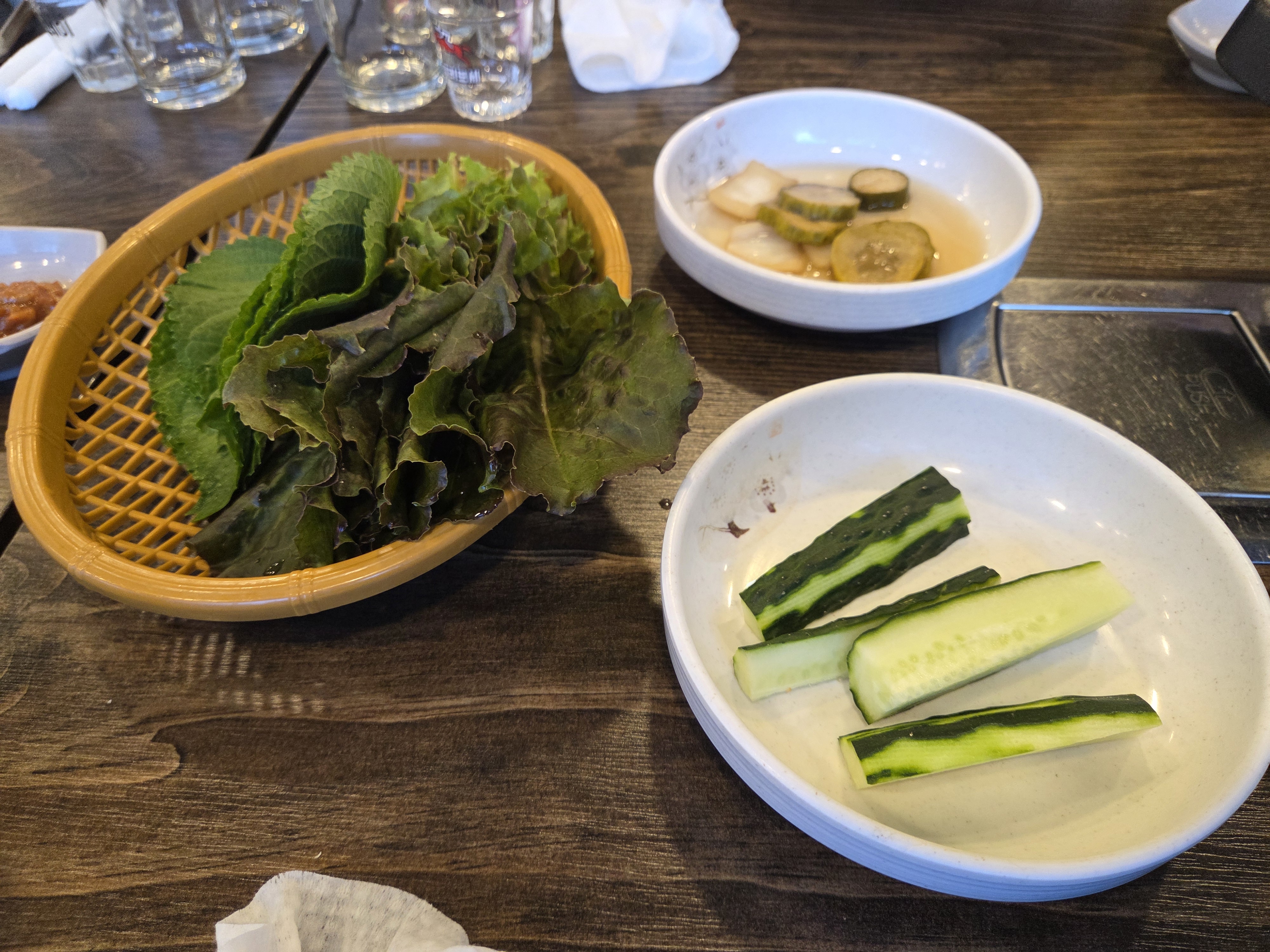 명이나물.상추와깻잎.마늘.파채..