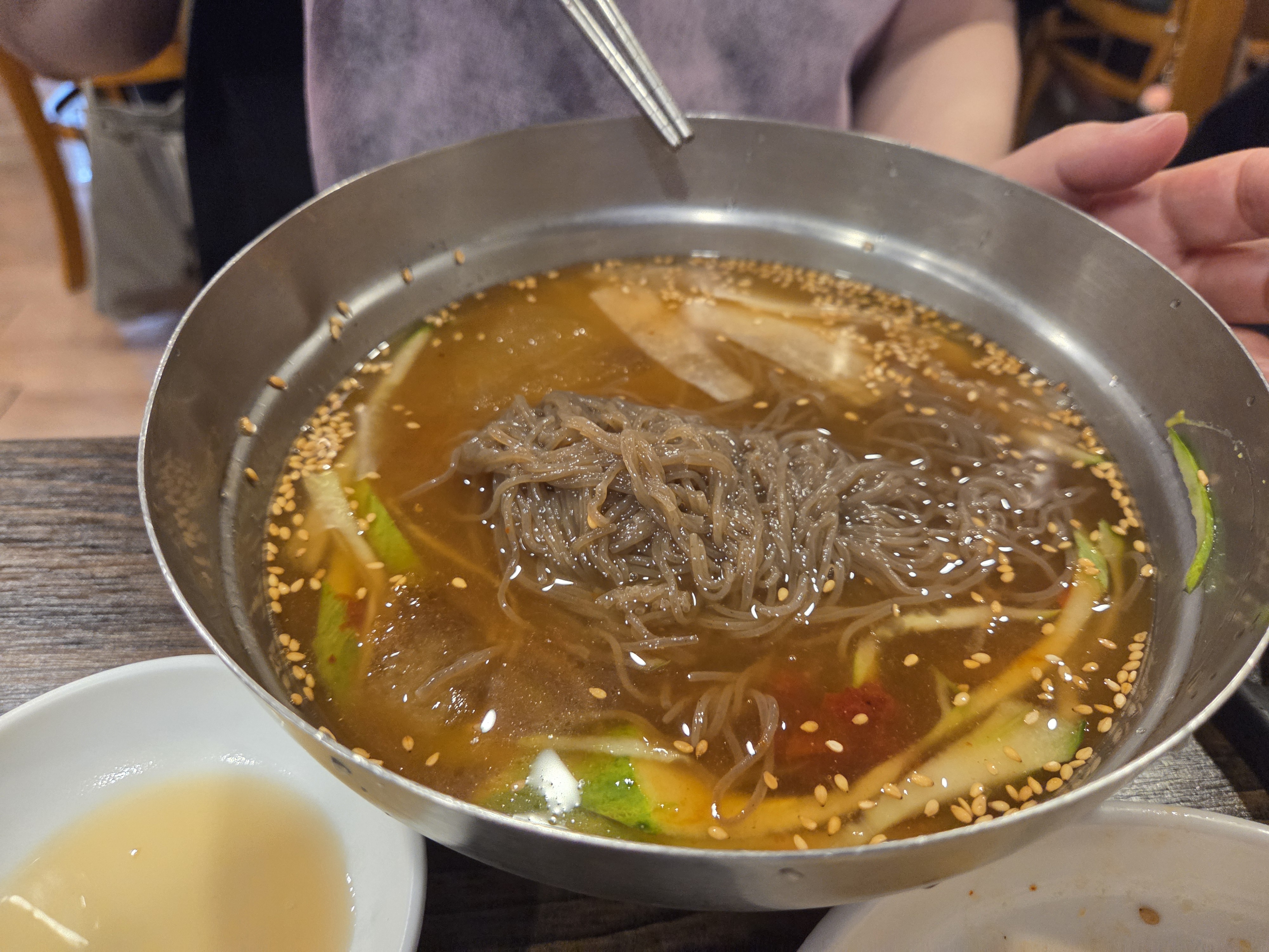 식사로 물냉면이랑 된장찌개와 공기밥