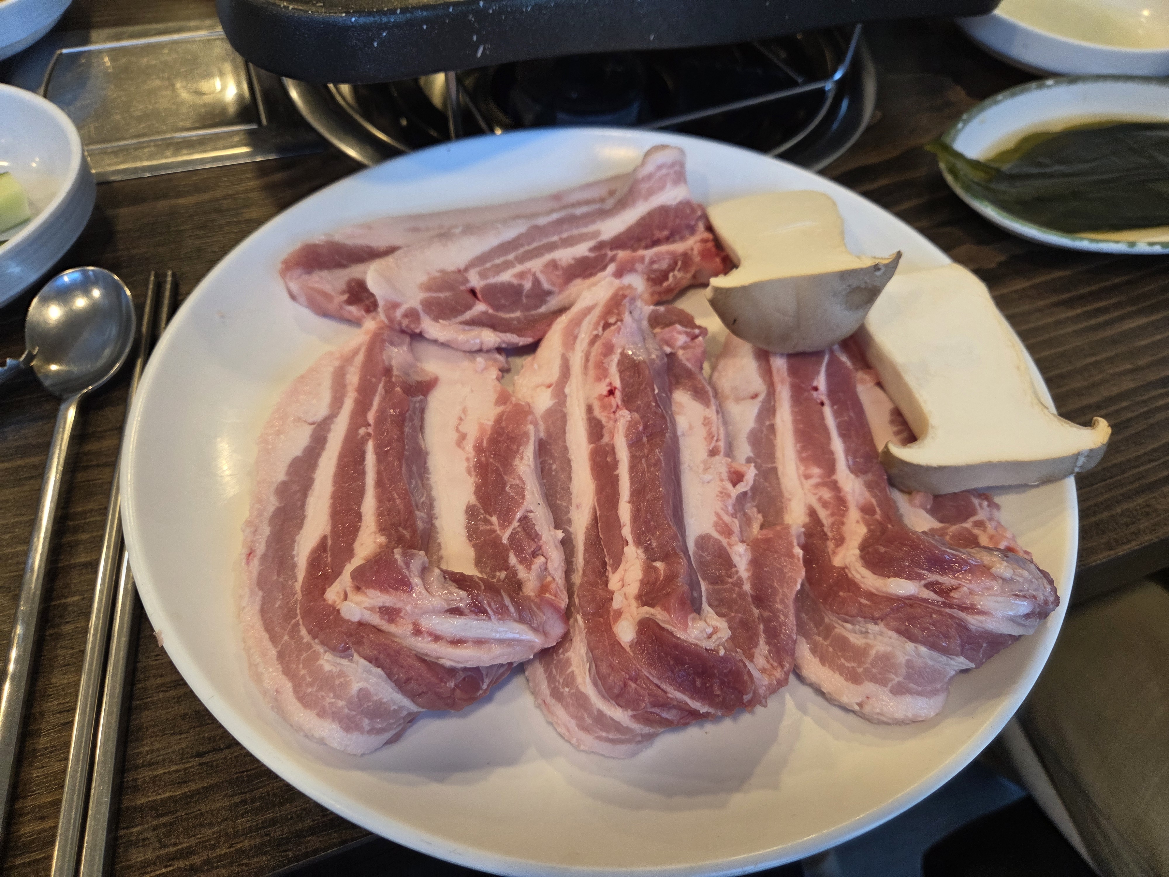 생삽겹살과 새송이버섯 등장..