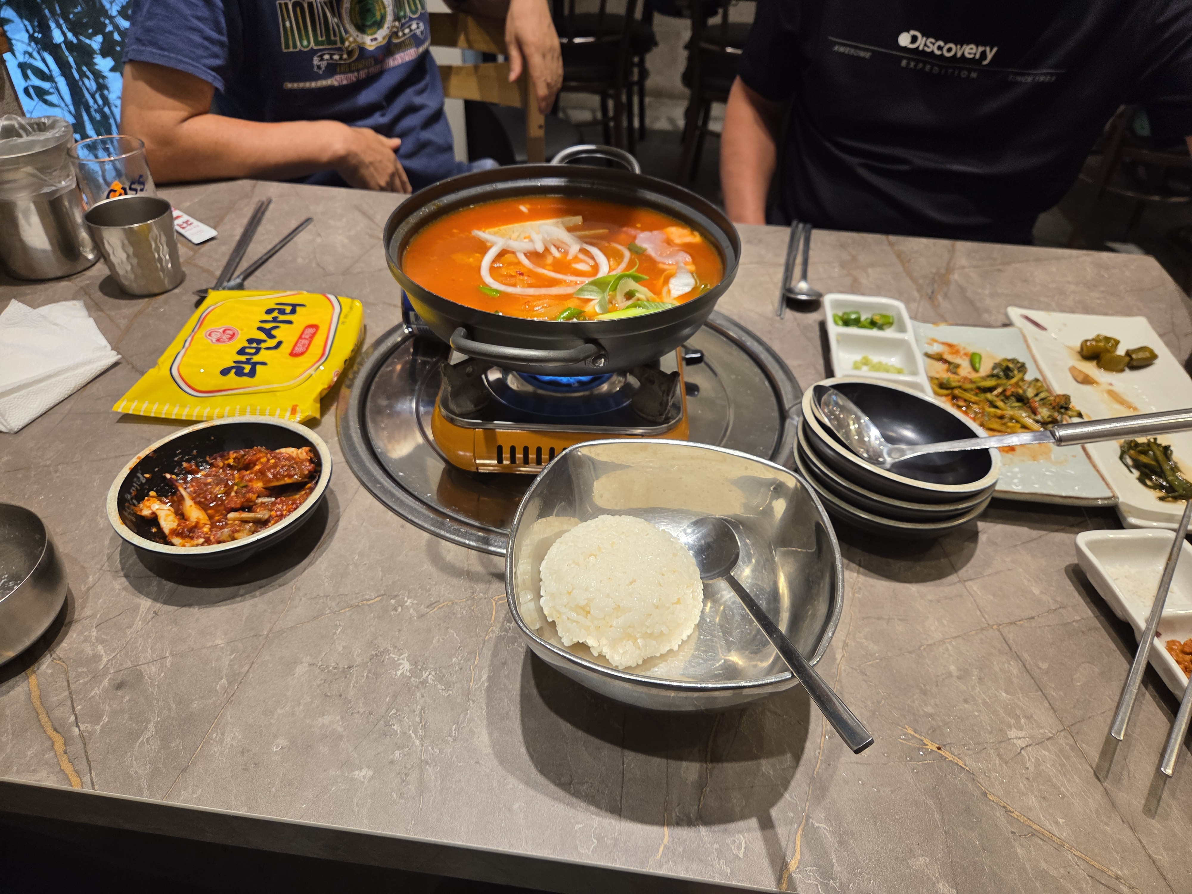 식사는 김치찌개와 공기밥2 주문..