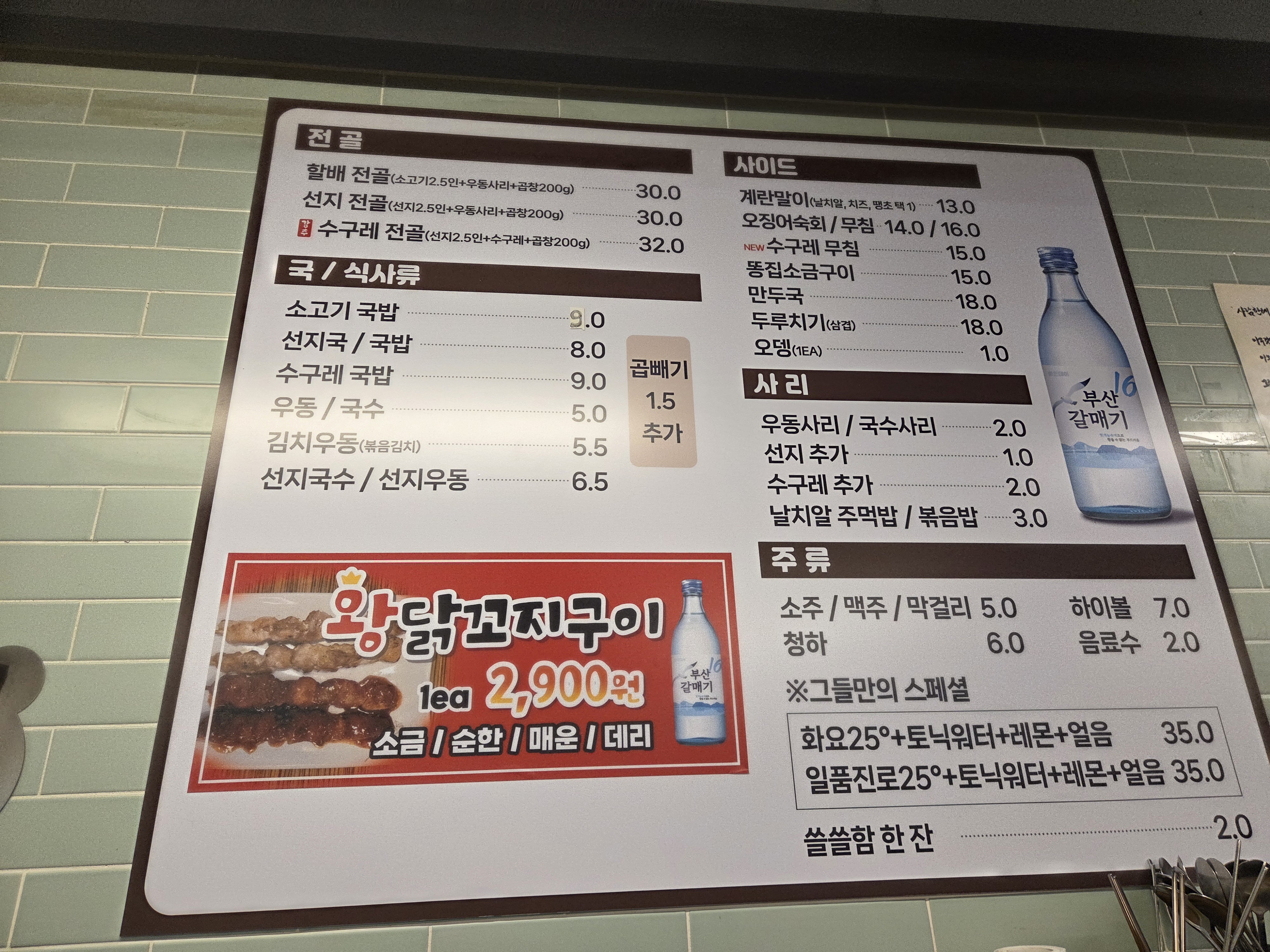 선지와 수구레 무료 추가는 각각 유료로..ㅎㅎ