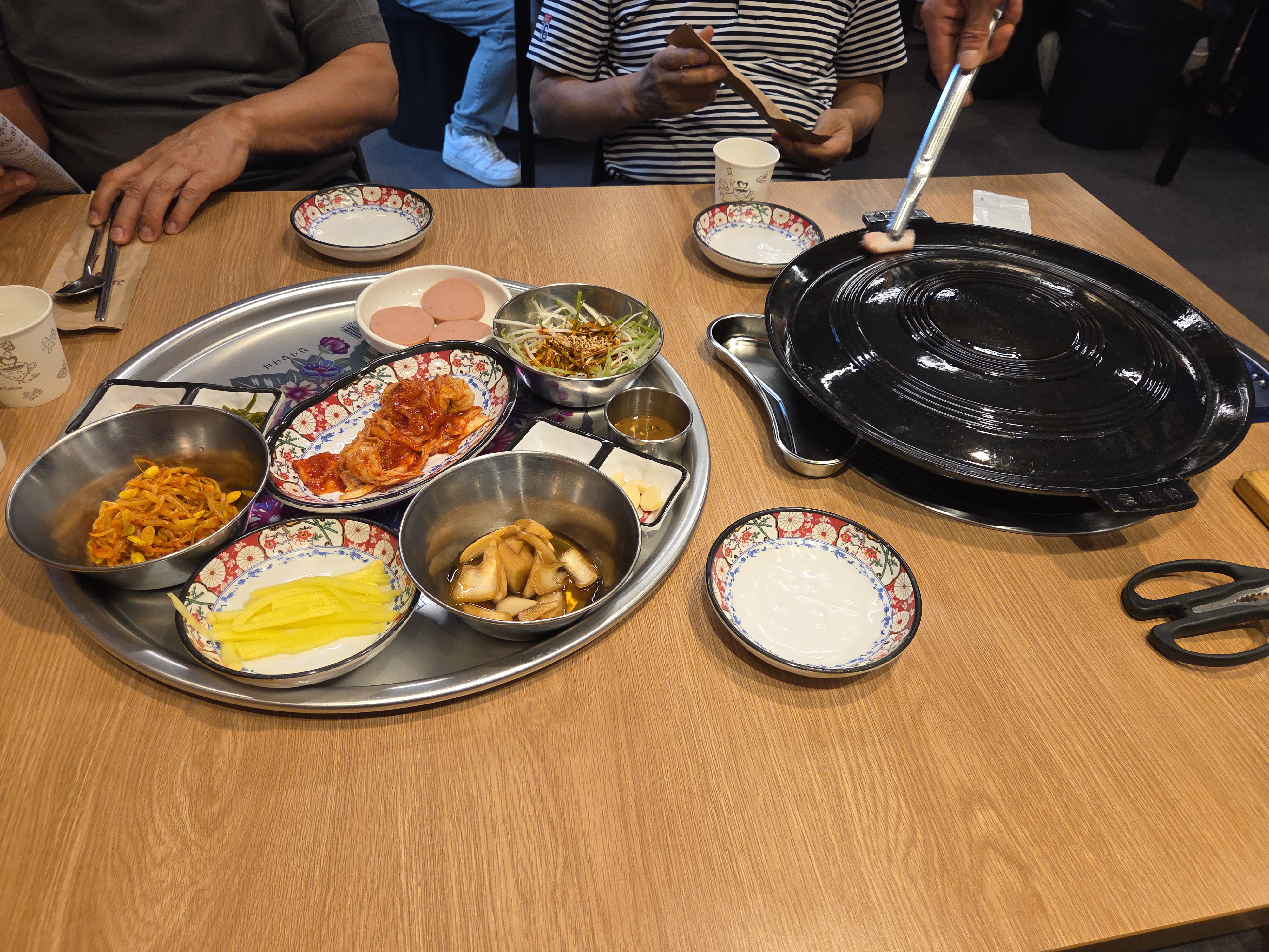 쟁반에 기본 찬들 나오고..