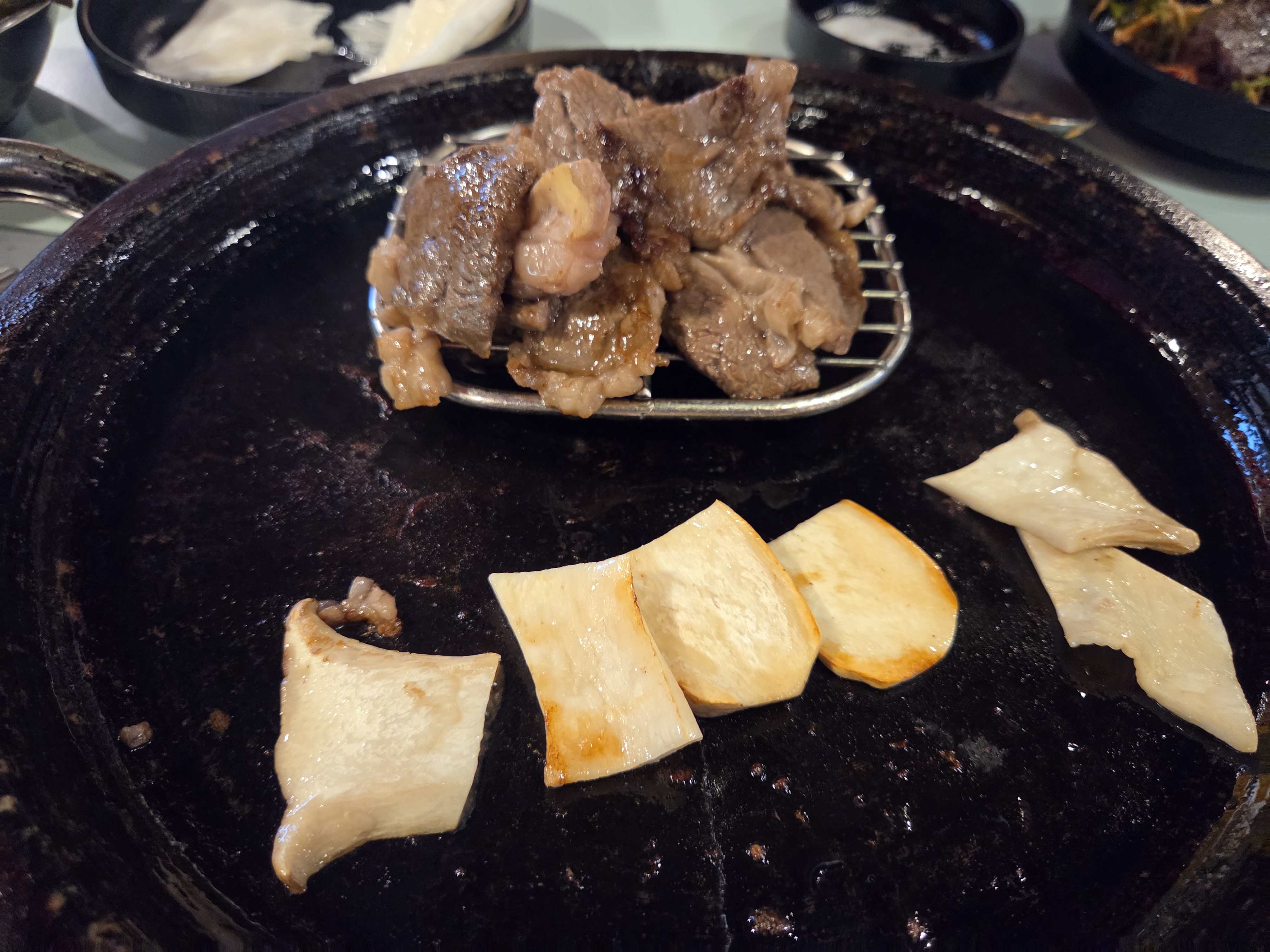 마늘과 새송이버섯 먼저 굽고..