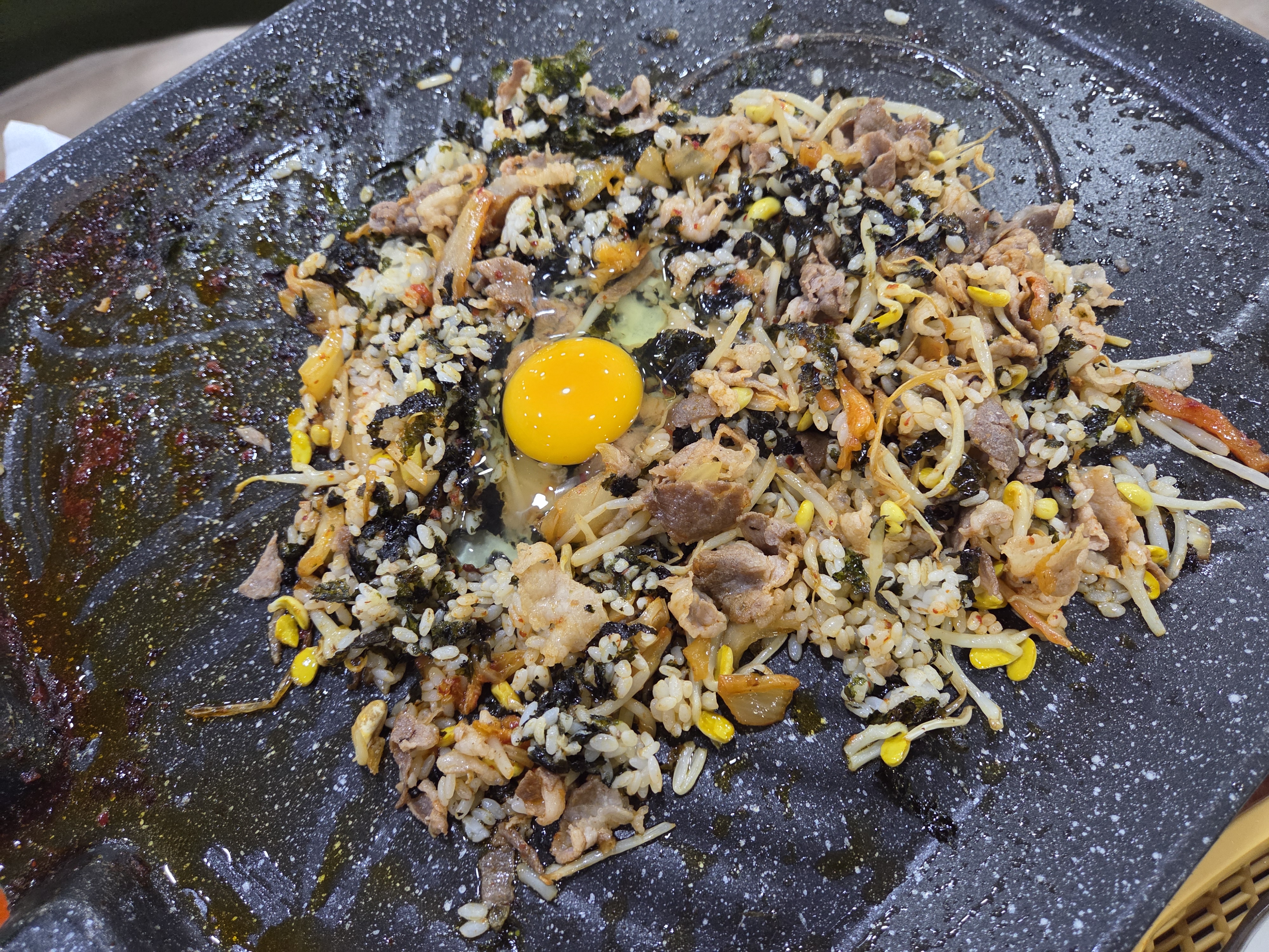 다같이 잘게 썰어 볶다가 공기밥 투하하여 볶다가 김가루와 생계란 투하하여