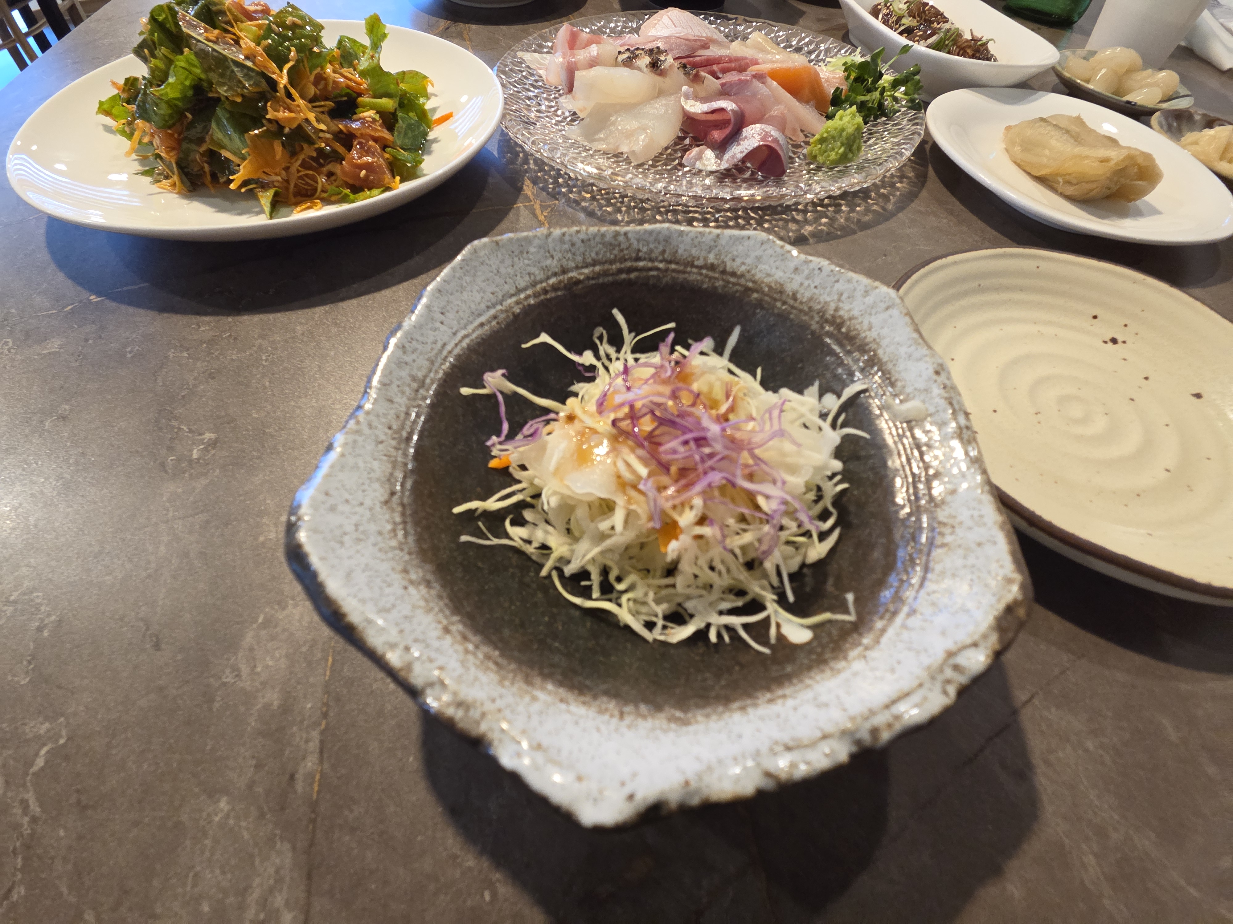 양배추 샐러드.새우장.락교.