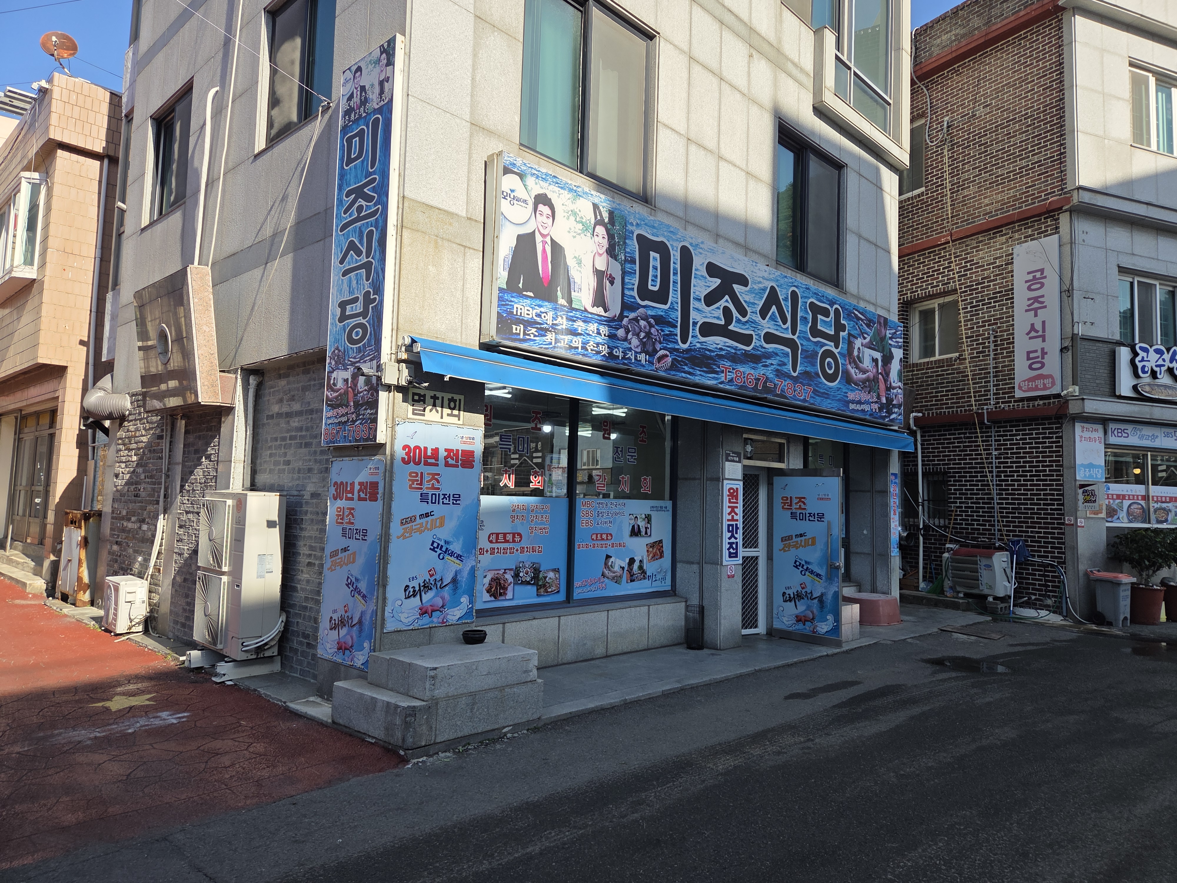 남해군 미조읍 미조식당..베스트 인기 메뉴..세트 2인상멸치회+멸치쌈밥+멸치튀김..기본 찬들이 나오고..시금치나물.톳나물.삶은문어.멸치볶음.깍두기.양파장아찌.도토리묵.쌈배추..멸치회무침..미나리와 양파랑 같이 초고추장무침..새콤달콤..멸치회와 공기밥 반으로 회비빔밥 조제..멸치찌개..쌈밥용..펄팔 끓여쌈배추에 밥올리고 멸치찌개올려서 한 입에..맛있네요..바삭한 멸차튀김..겉바속촉..계속 손님들이 들어오고 웨이탕까지..빨리 먹어야지..배불리 맛있게 잘먹었네요..